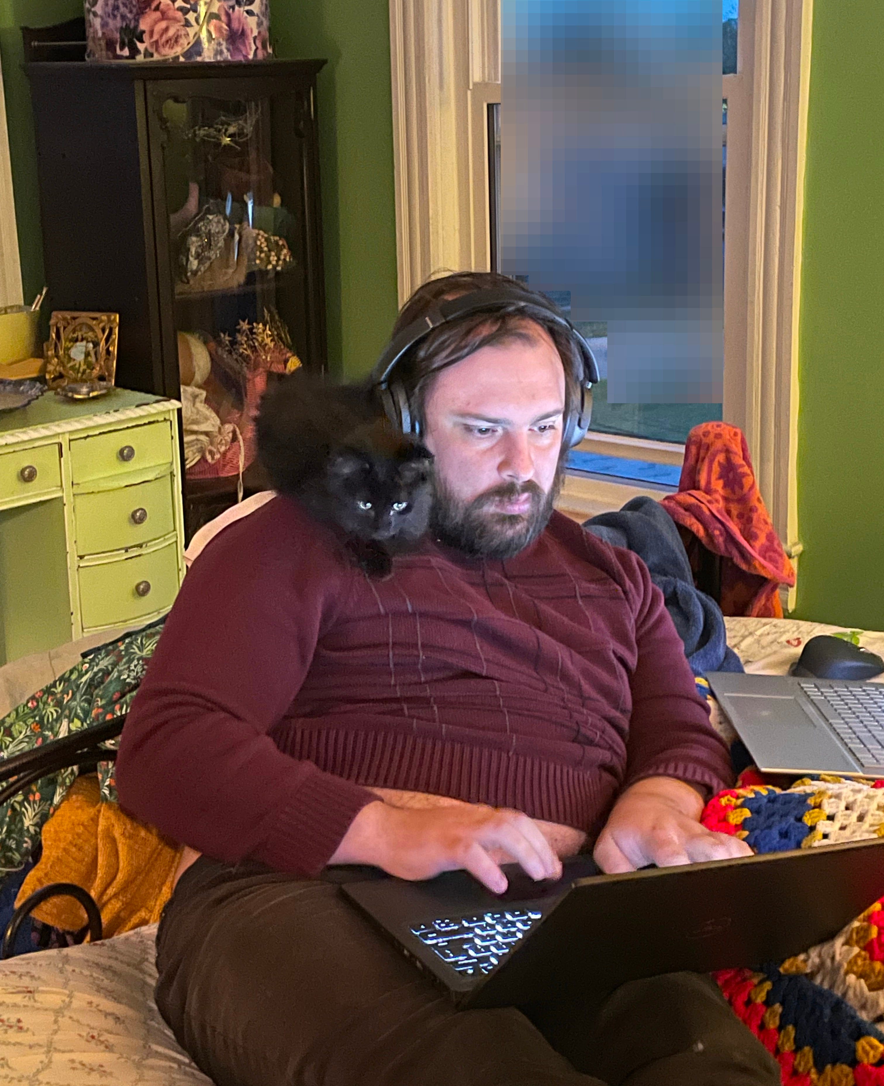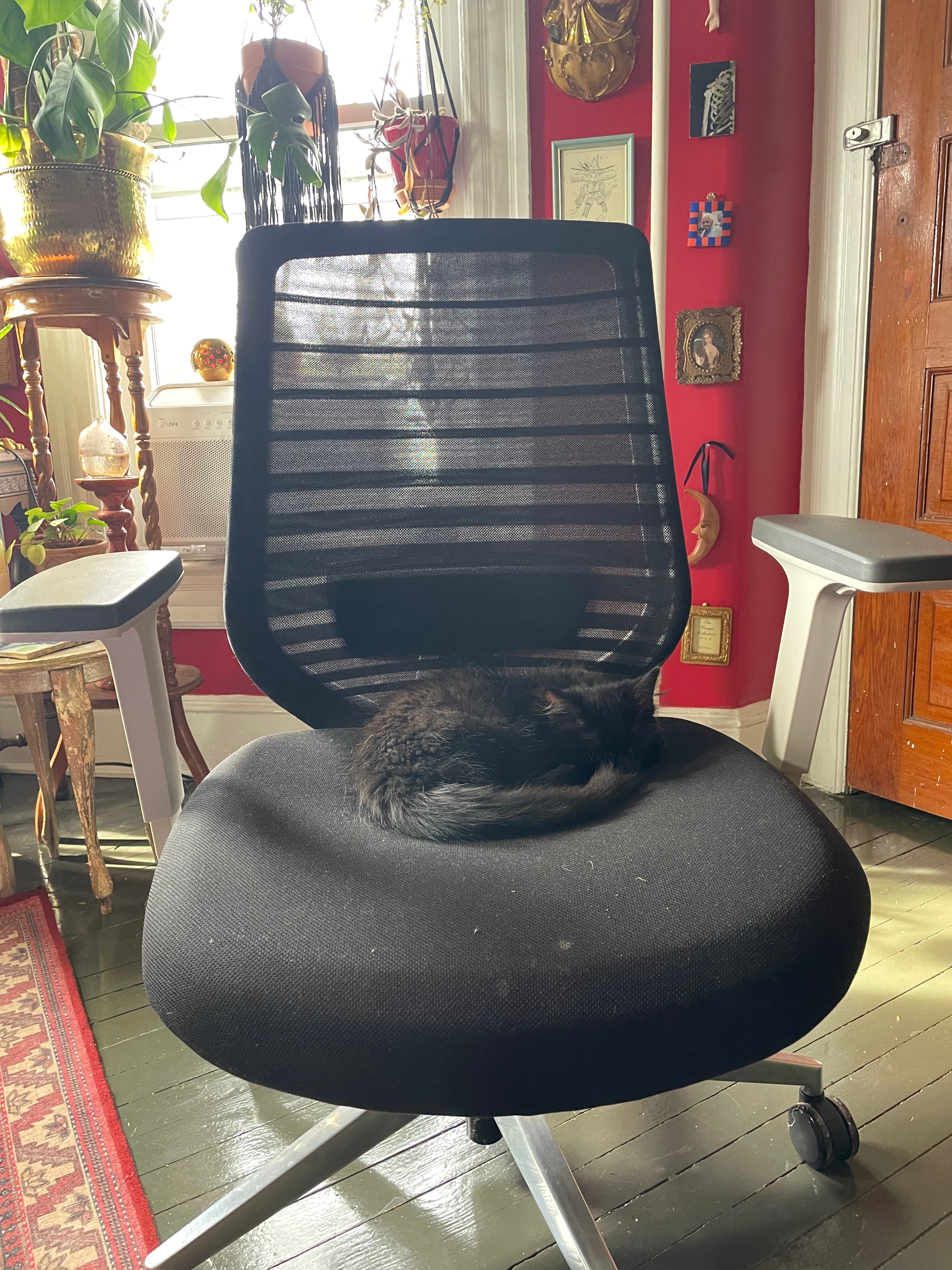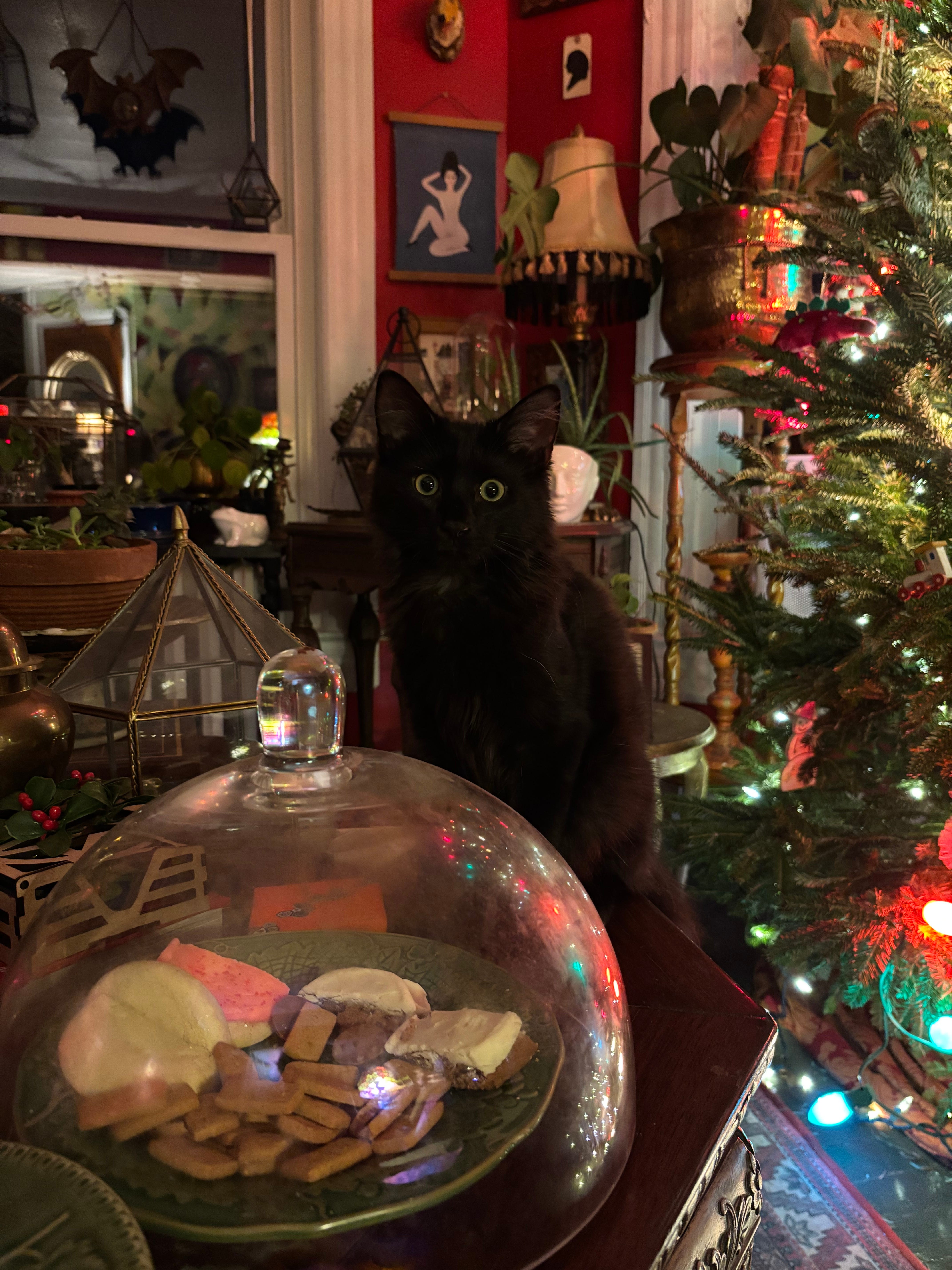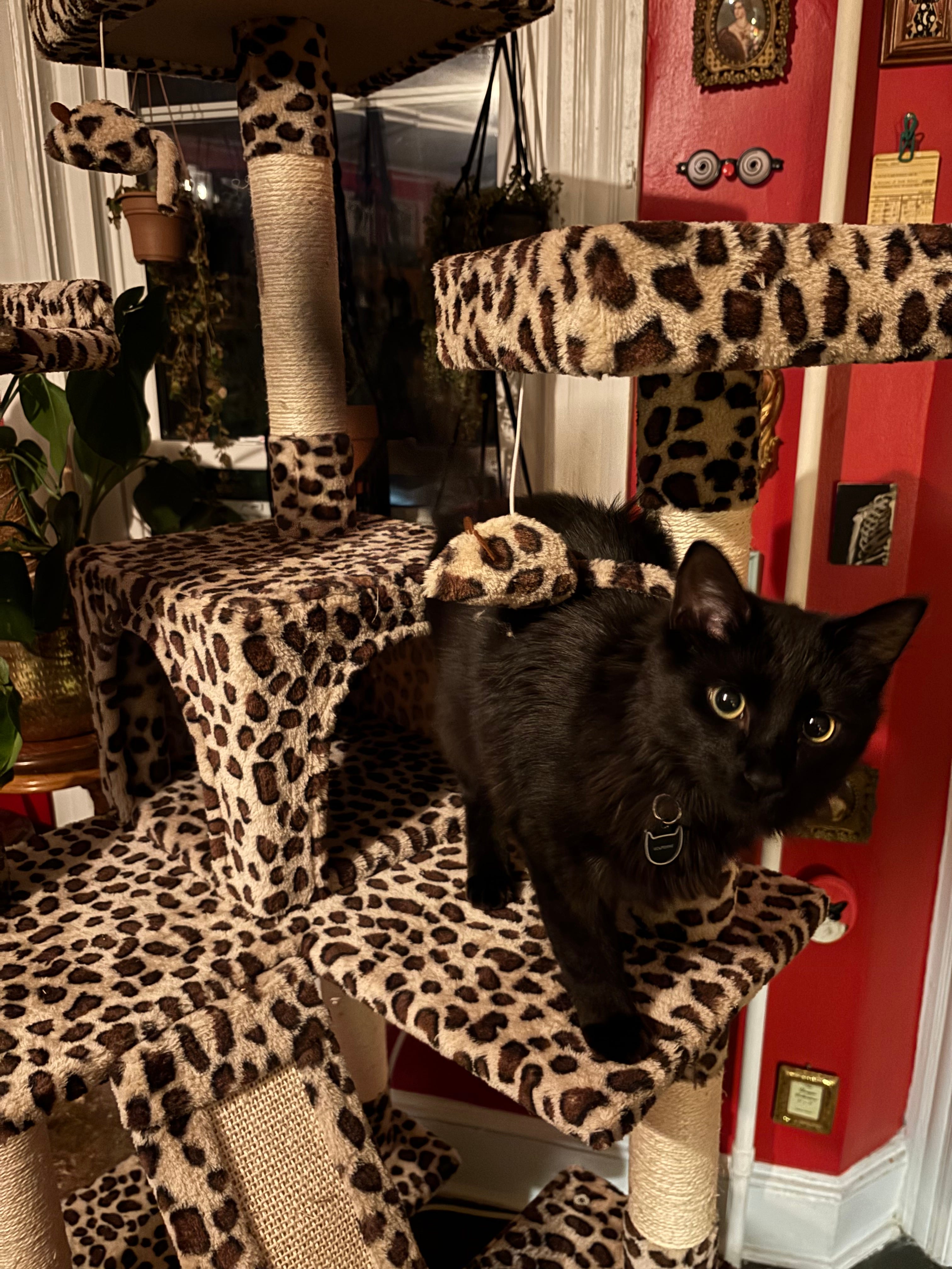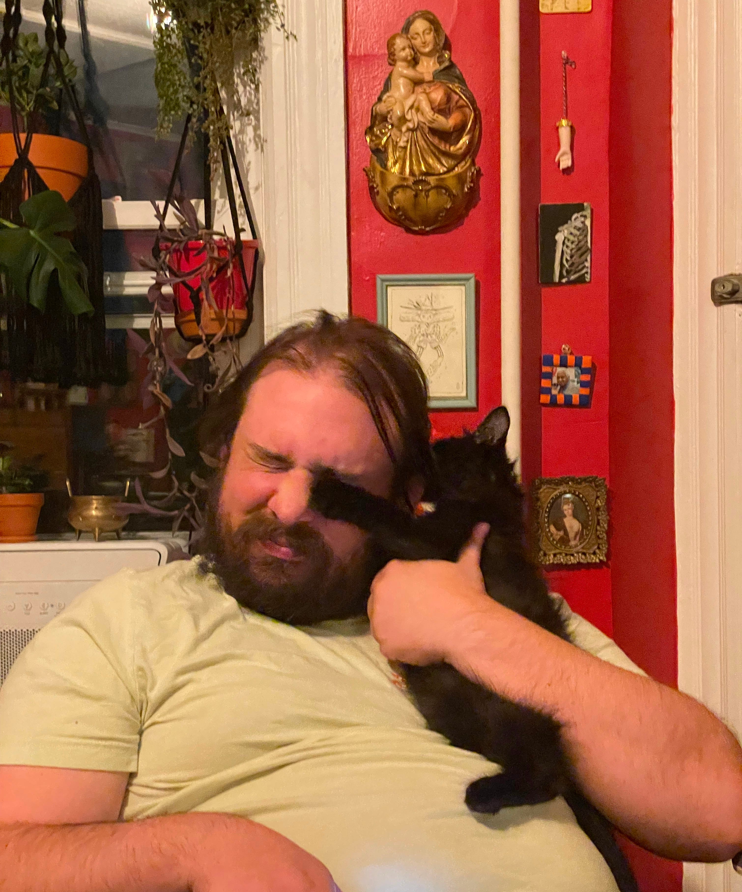 Cat Calloway (This was actually his legal name for a couple weeks!!! Our kitty is very vocal and loves to “sing” at us. We both love the music of Cab Calloway and believe him to be under-acknowledged both as an OG goth artist and as a Baltimore artist. He is most associated with Harlem but he got his start here! Also Chris loves puns. After weeks of looking for the perfect name we had finally found one! …Or so we thought until we took him to his first vet appointment. The administration assistant and the vet kept saying things like “Here, Cat! Want a treat, Cat? You’re such a good boy, Cat!” and my heart sank. It felt like after all that work we hadn’t named him at all! Back to the drawing board….)