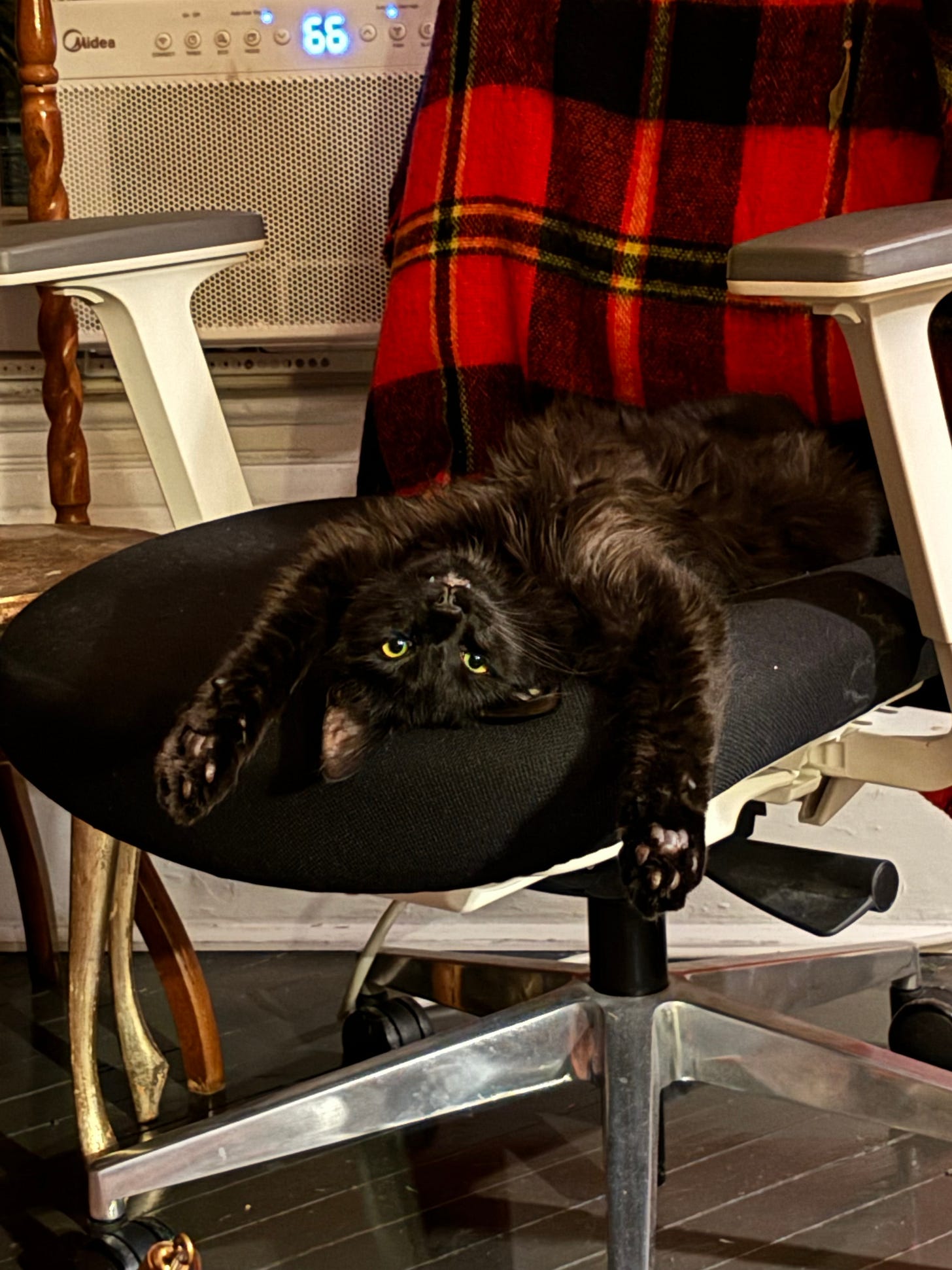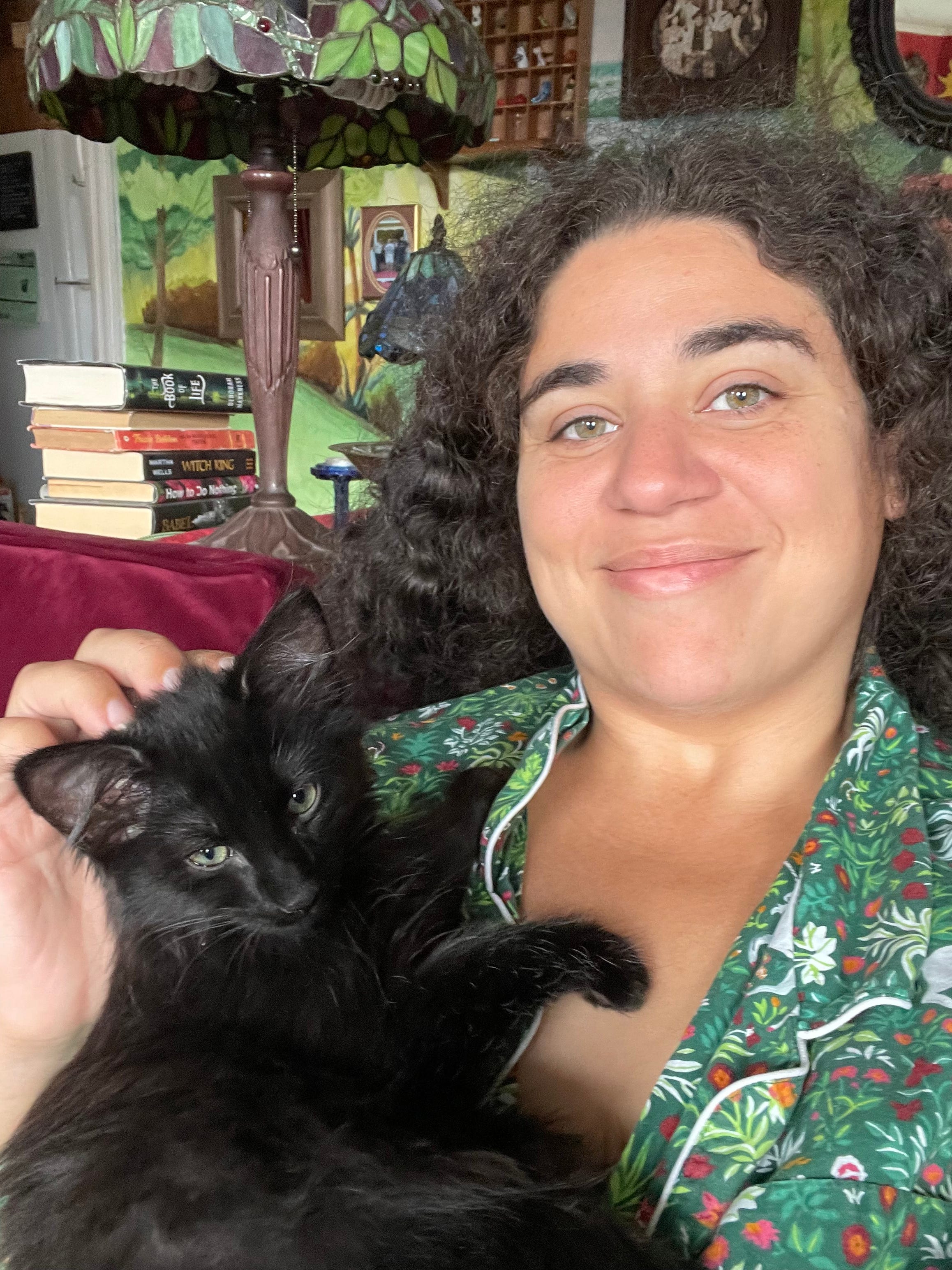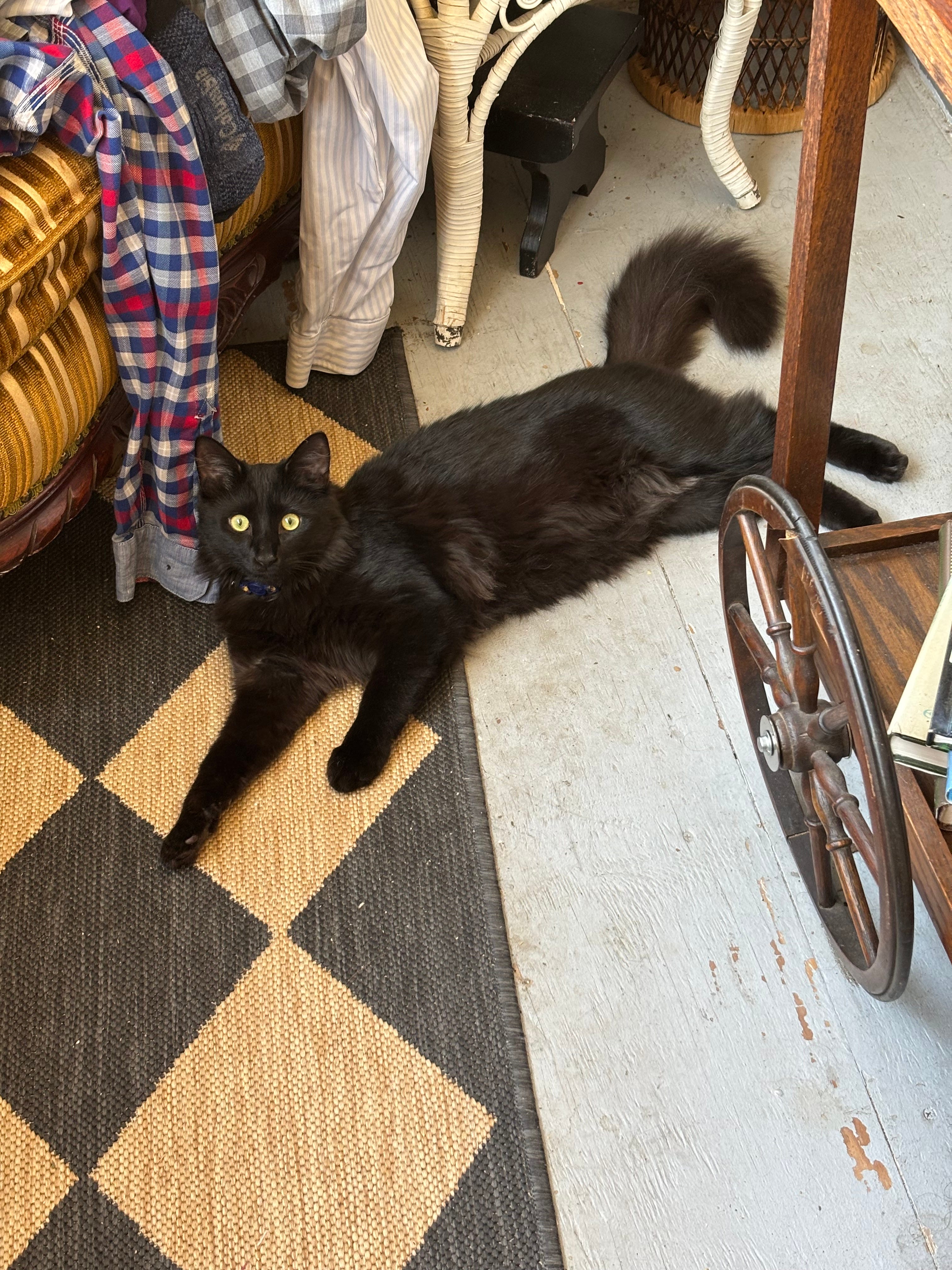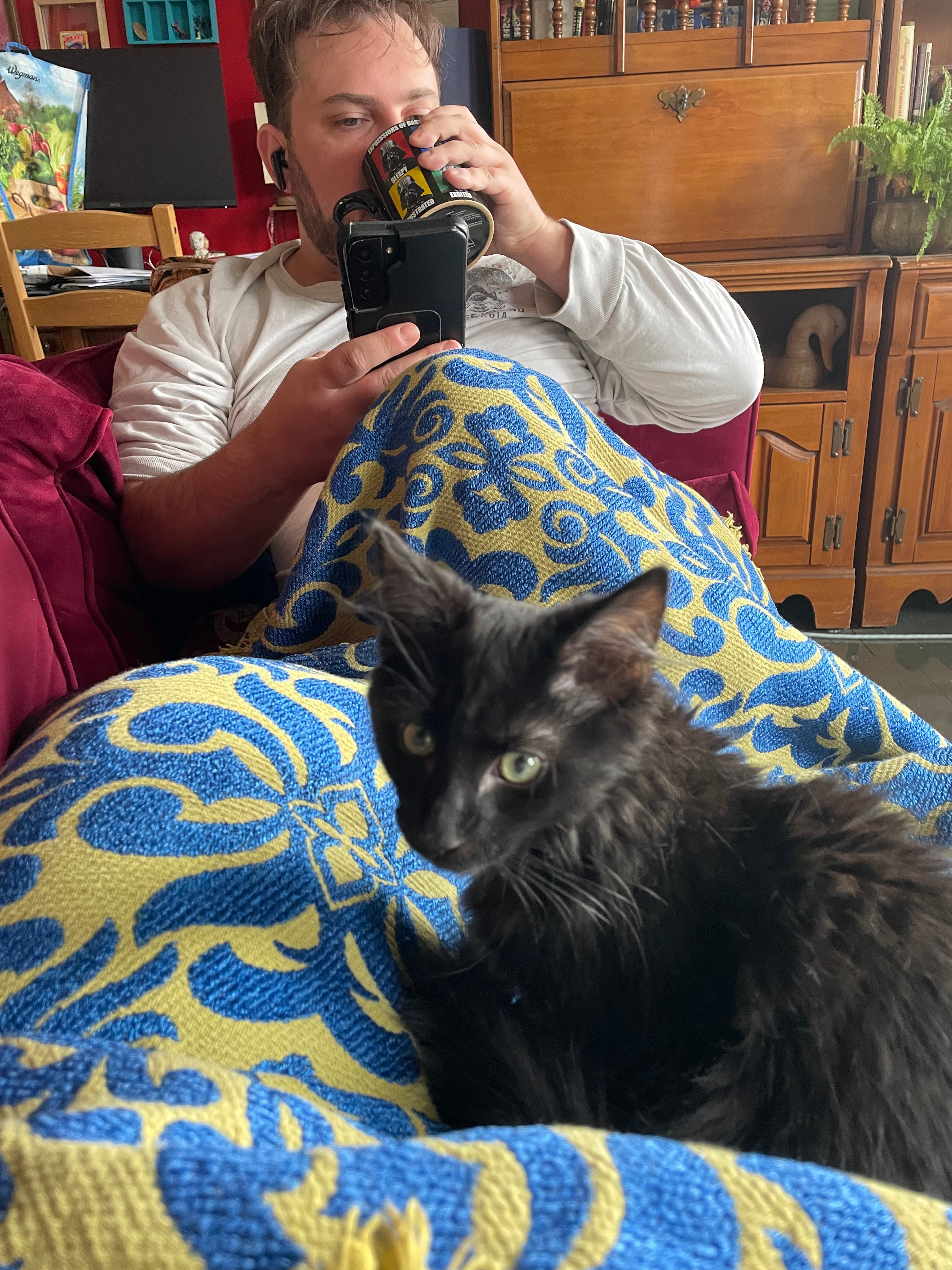 Cat Calloway (This was actually his legal name for a couple weeks!!! Our kitty is very vocal and loves to “sing” at us. We both love the music of Cab Calloway and believe him to be under-acknowledged both as an OG goth artist and as a Baltimore artist. He is most associated with Harlem but he got his start here! Also Chris loves puns. After weeks of looking for the perfect name we had finally found one! …Or so we thought until we took him to his first vet appointment. The administration assistant and the vet kept saying things like “Here, Cat! Want a treat, Cat? You’re such a good boy, Cat!” and my heart sank. It felt like after all that work we hadn’t named him at all! Back to the drawing board….)