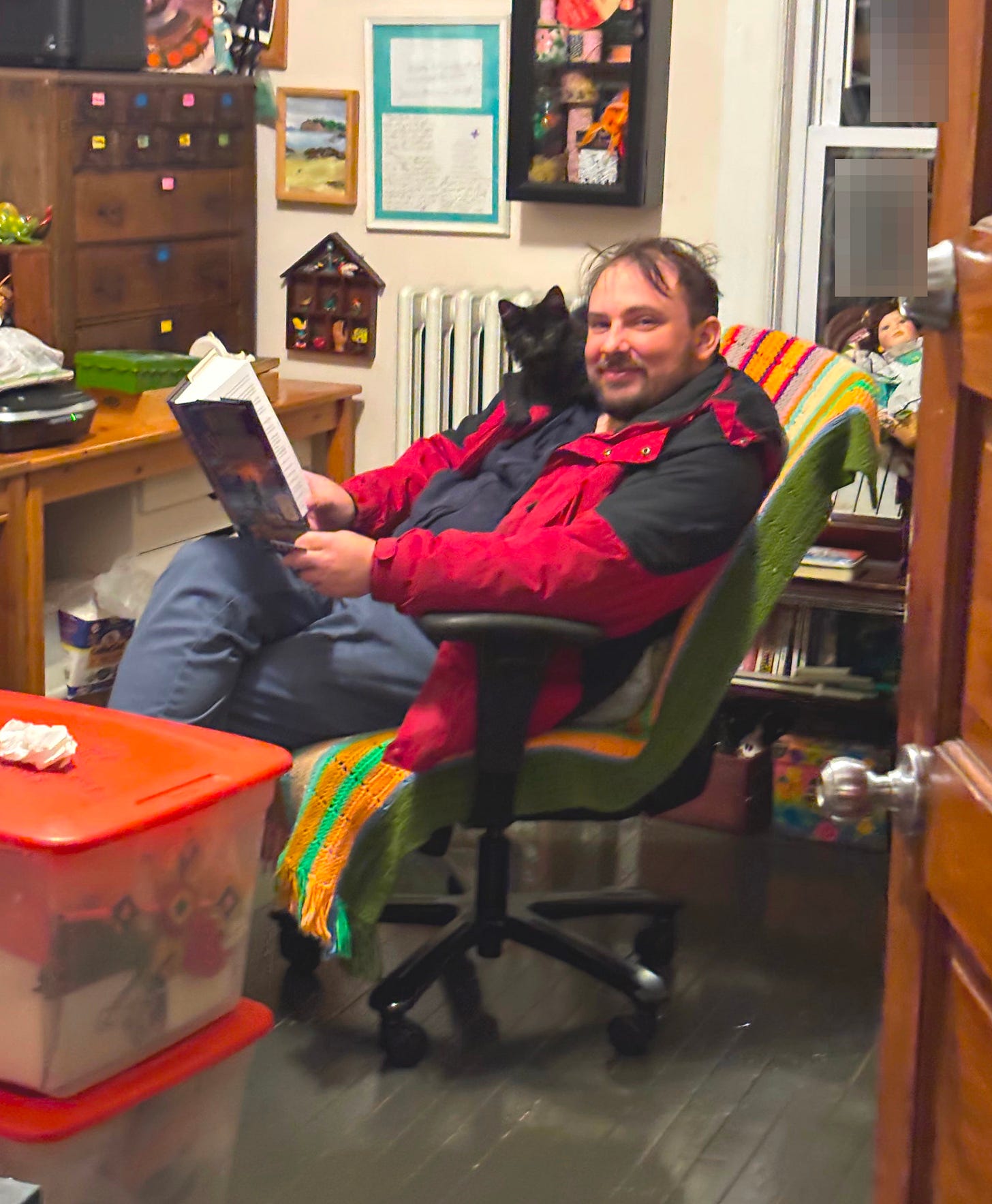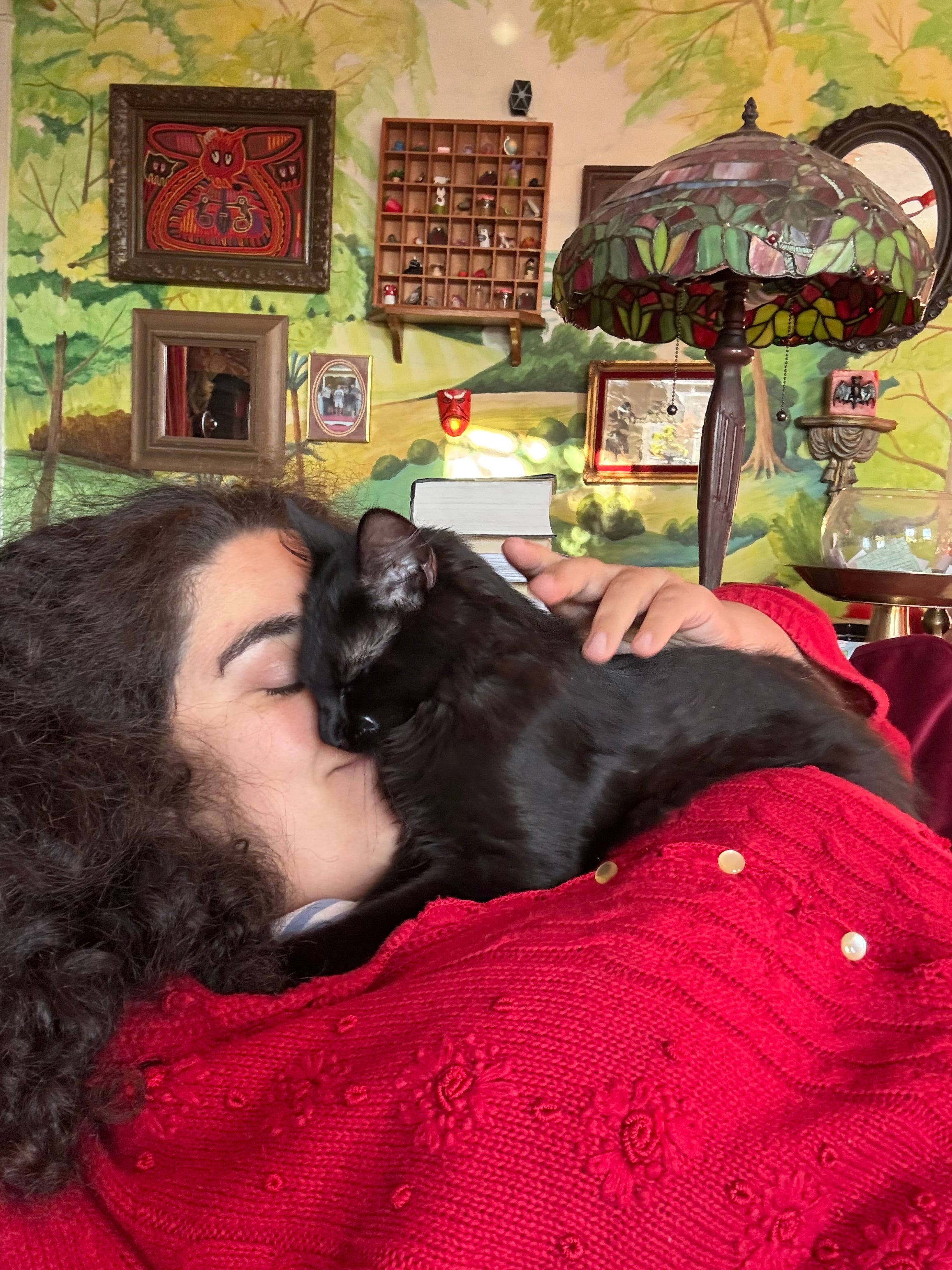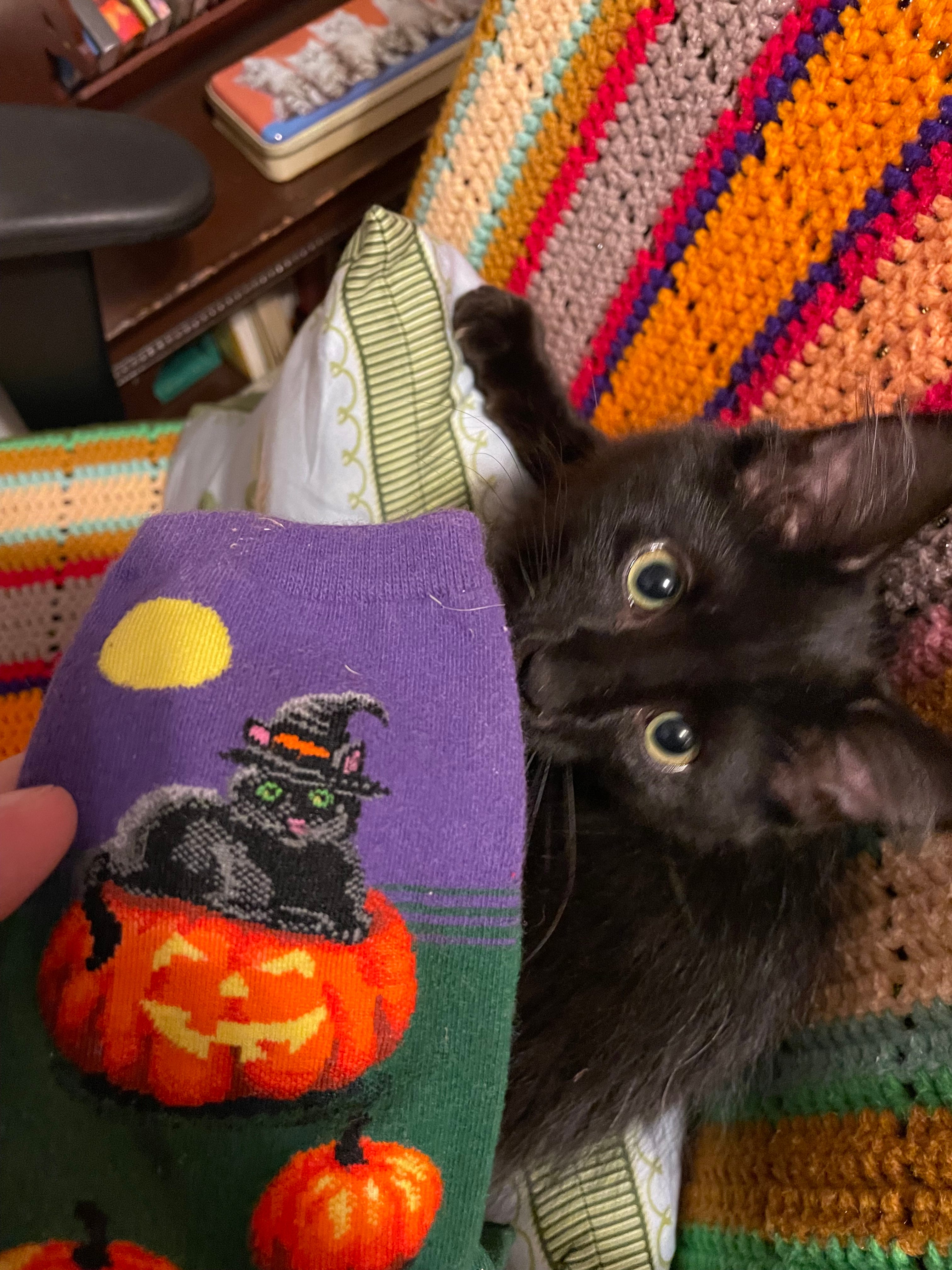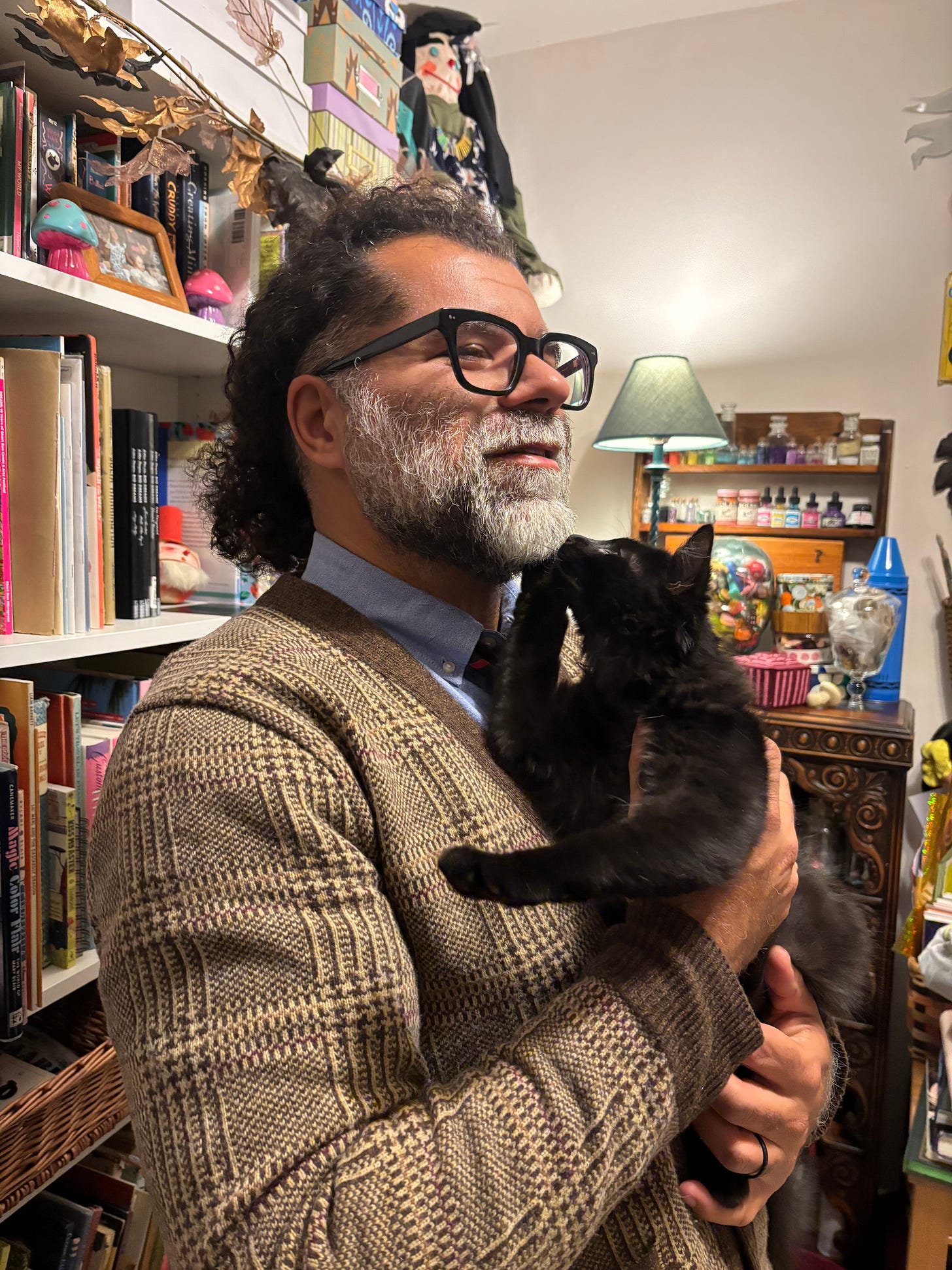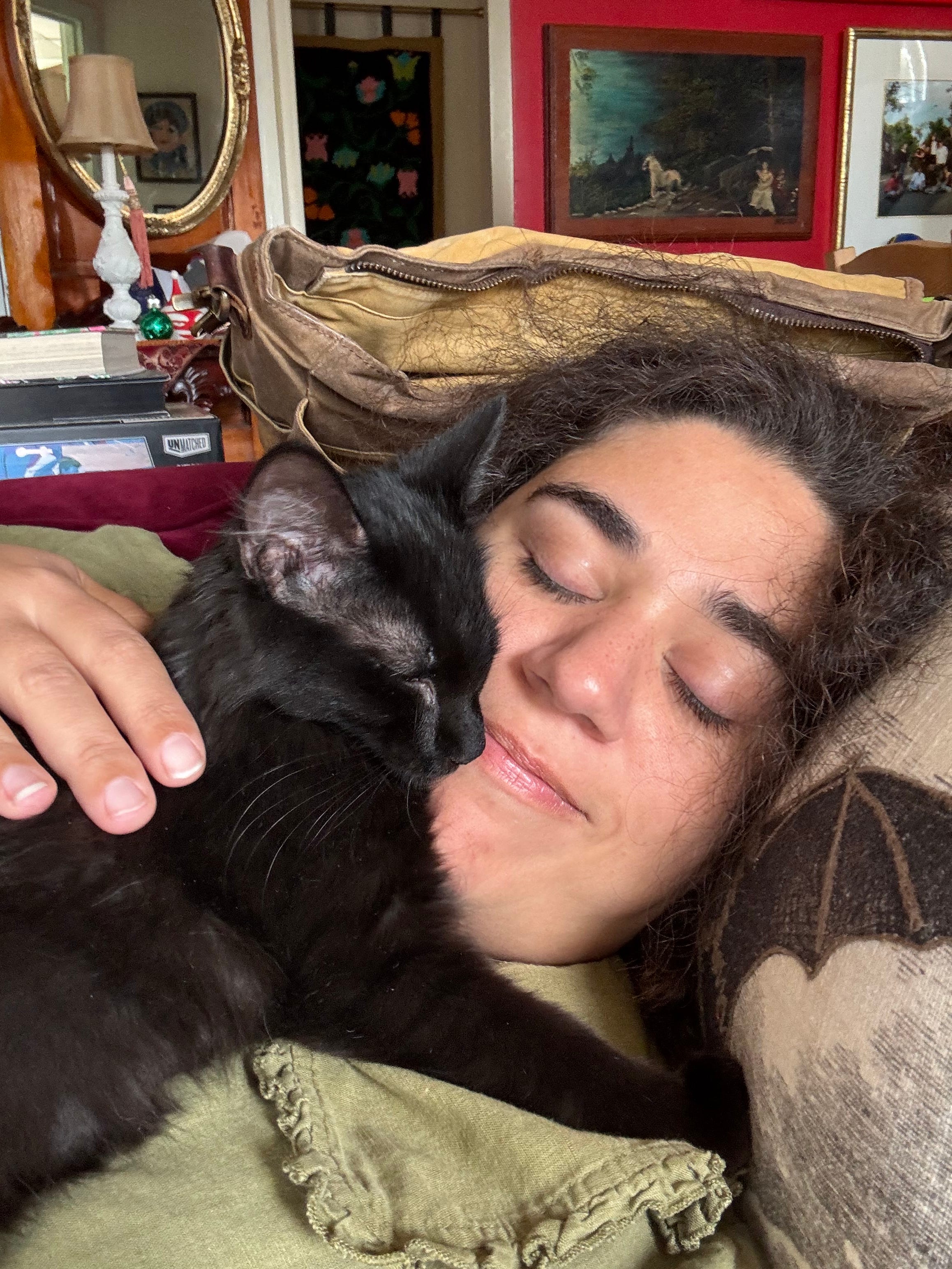 Cat Calloway (This was actually his legal name for a couple weeks!!! Our kitty is very vocal and loves to “sing” at us. We both love the music of Cab Calloway and believe him to be under-acknowledged both as an OG goth artist and as a Baltimore artist. He is most associated with Harlem but he got his start here! Also Chris loves puns. After weeks of looking for the perfect name we had finally found one! …Or so we thought until we took him to his first vet appointment. The administration assistant and the vet kept saying things like “Here, Cat! Want a treat, Cat? You’re such a good boy, Cat!” and my heart sank. It felt like after all that work we hadn’t named him at all! Back to the drawing board….)