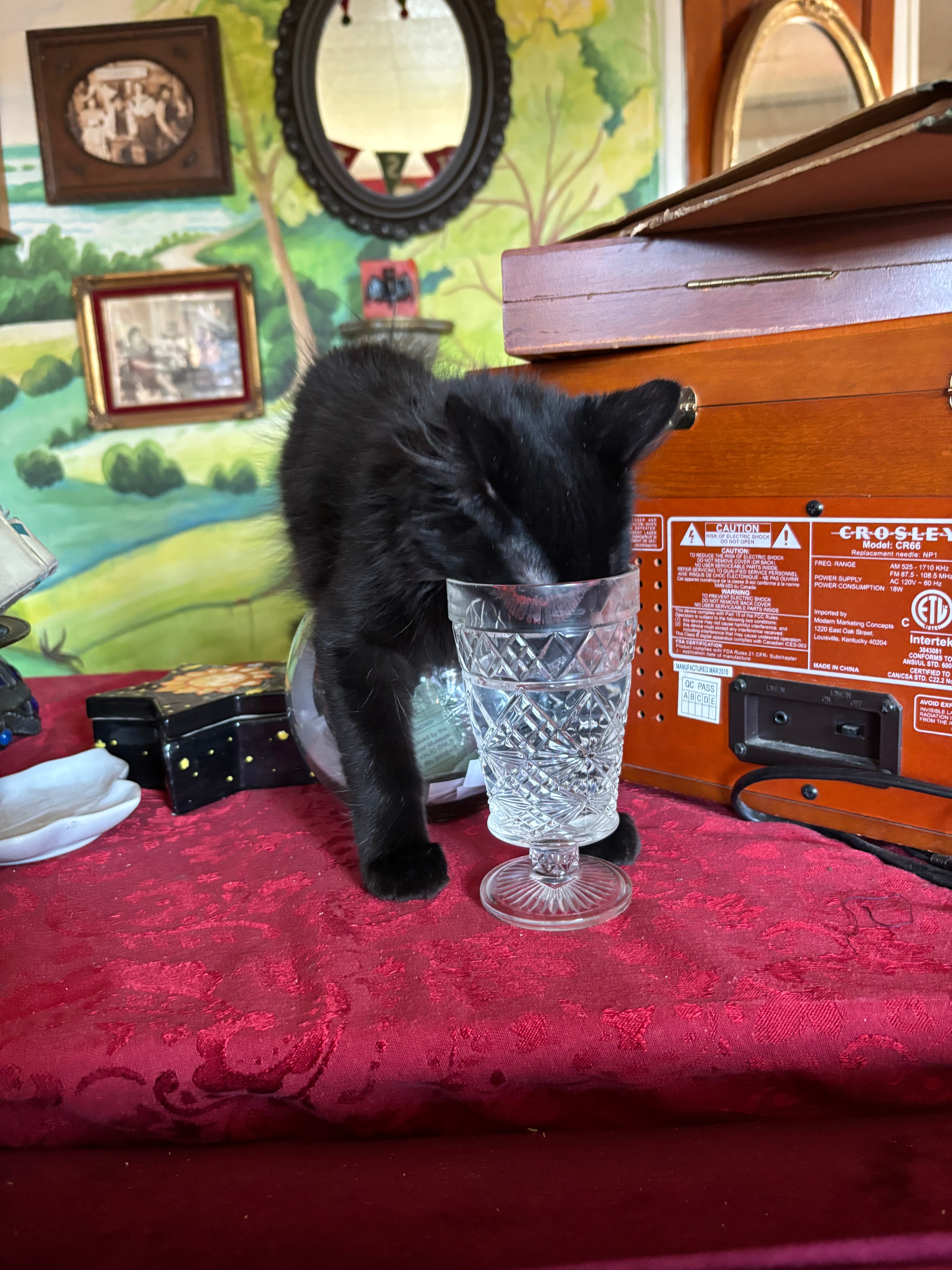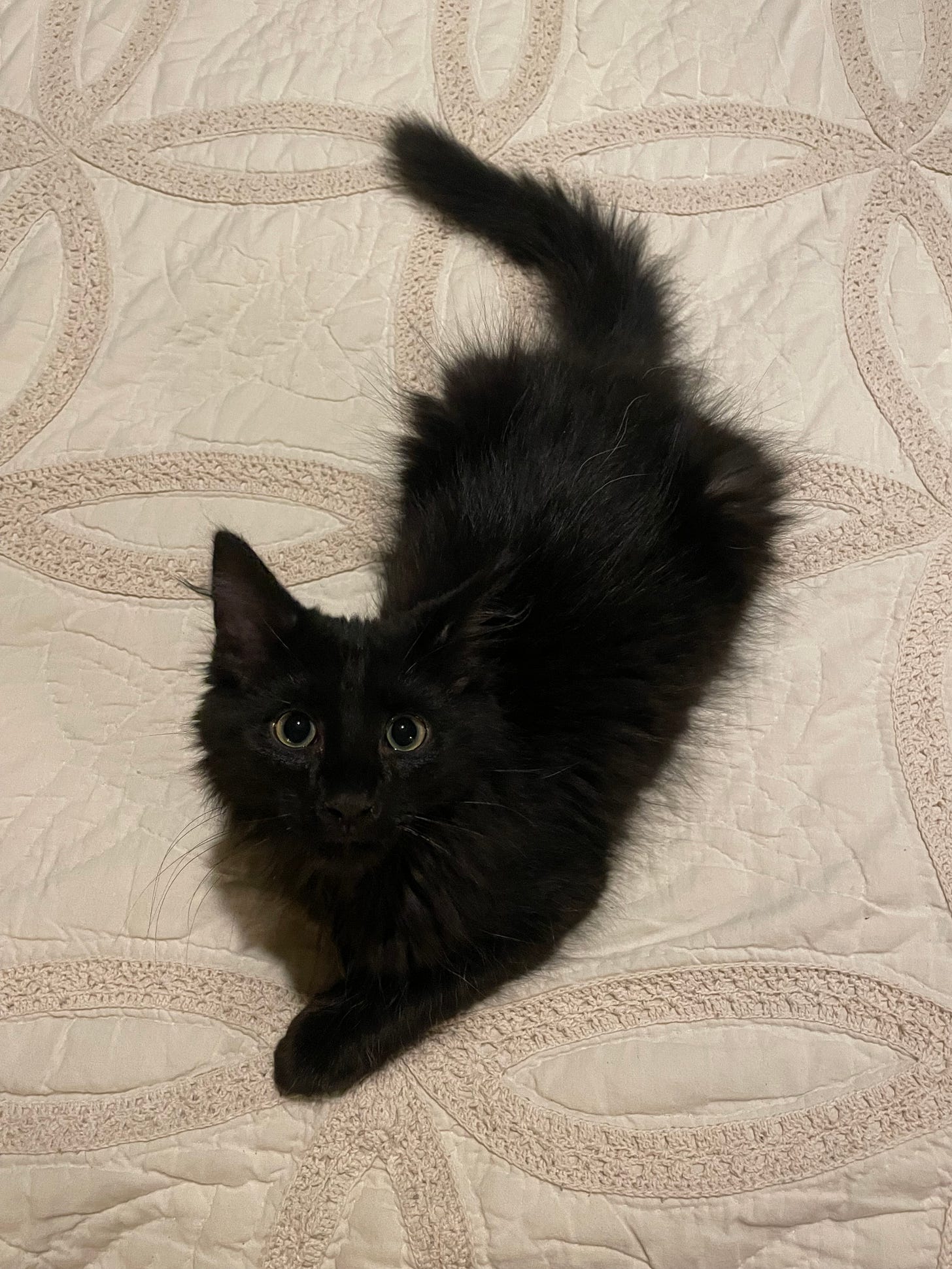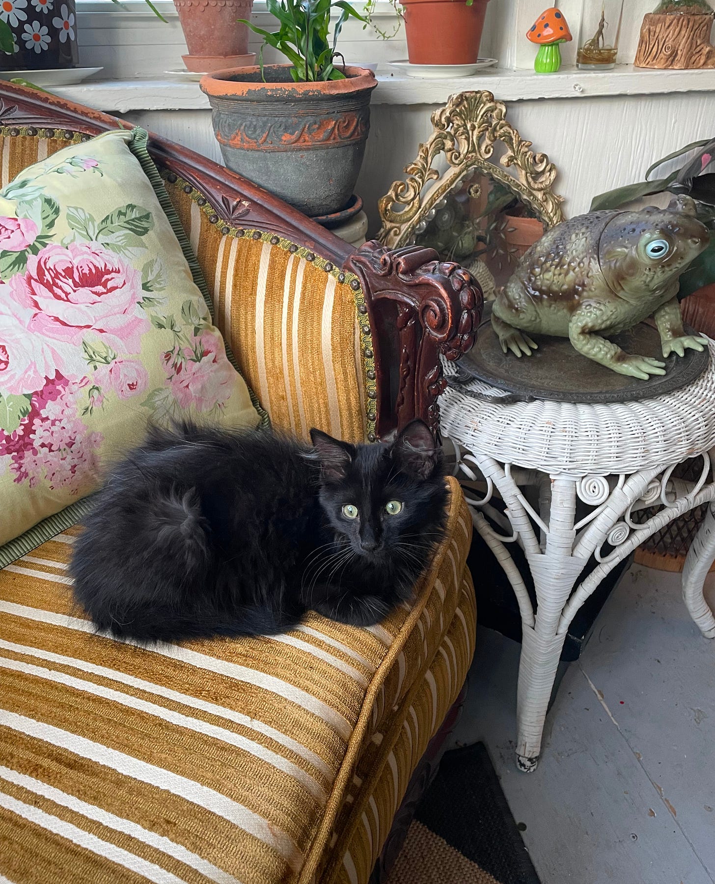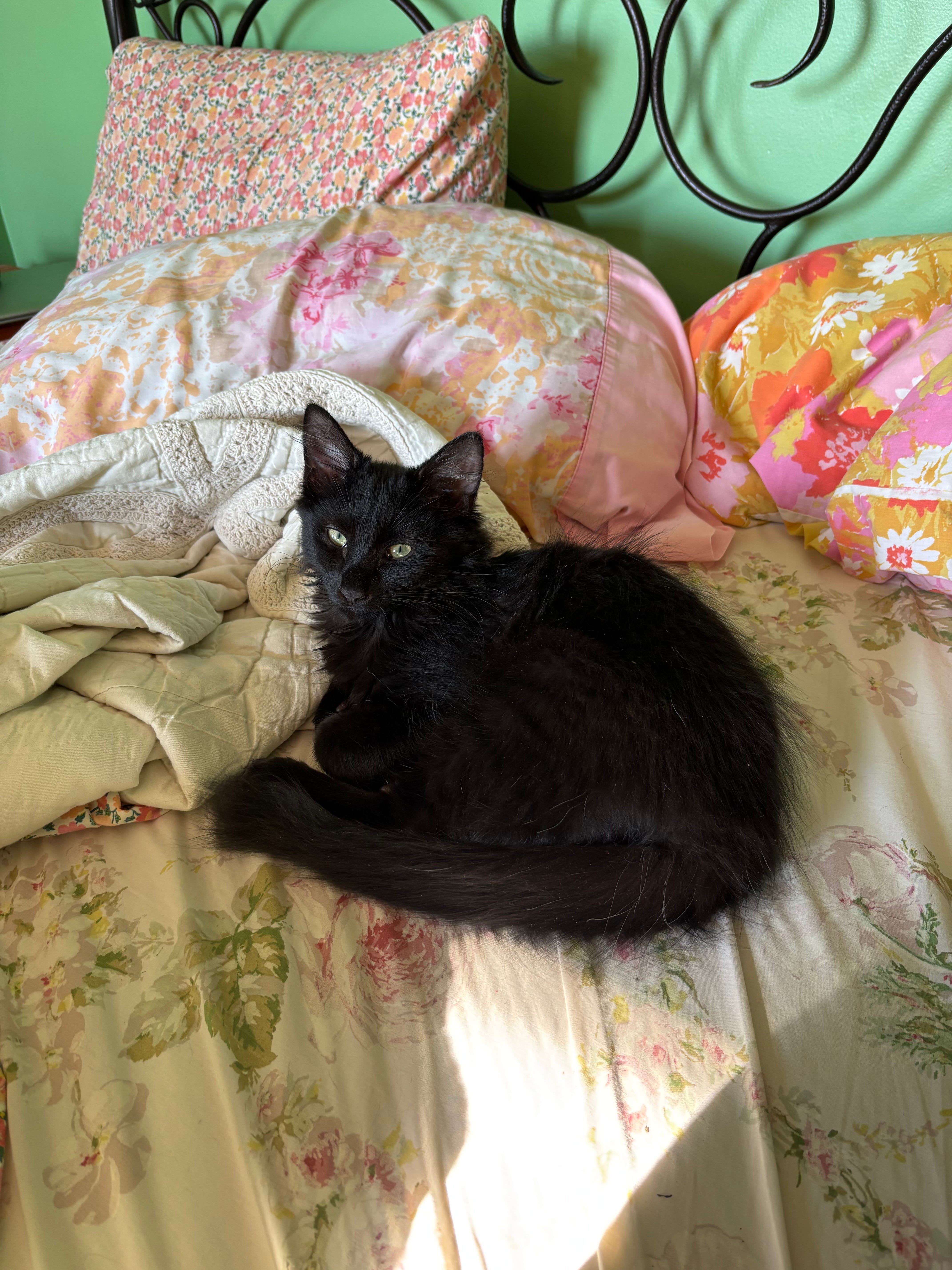 Many people suggested popular black cat names like “Binx,” “Salem,” “Shadow,” and “Void,” but none of these resonated with us or how we see this particular kitten.