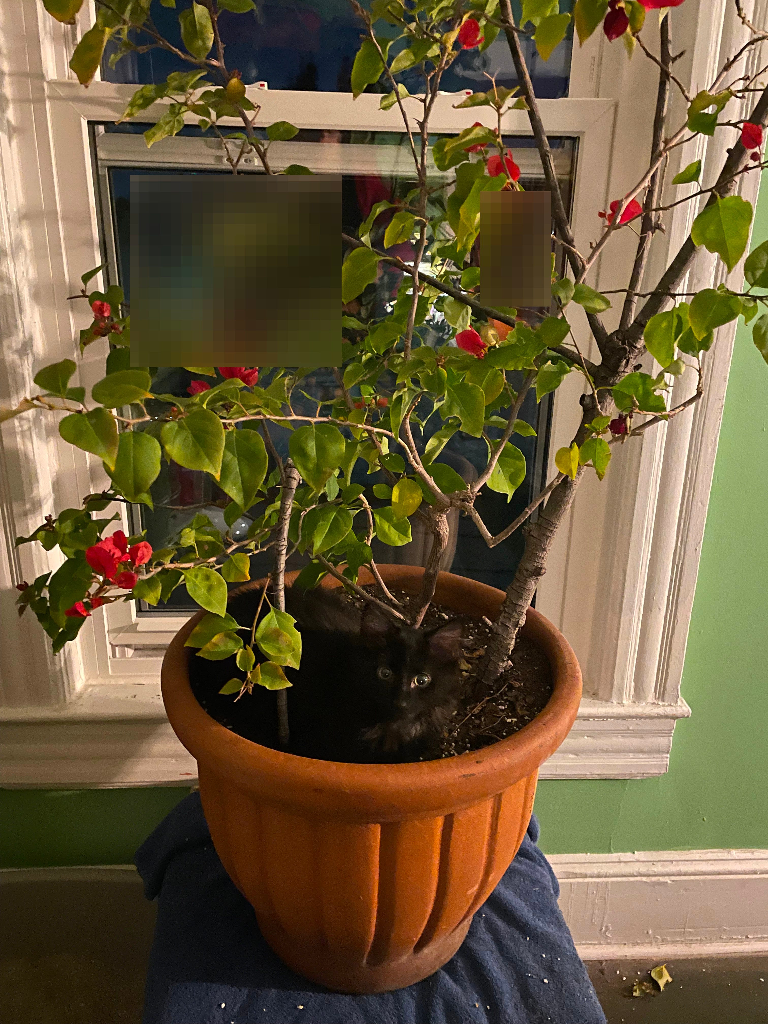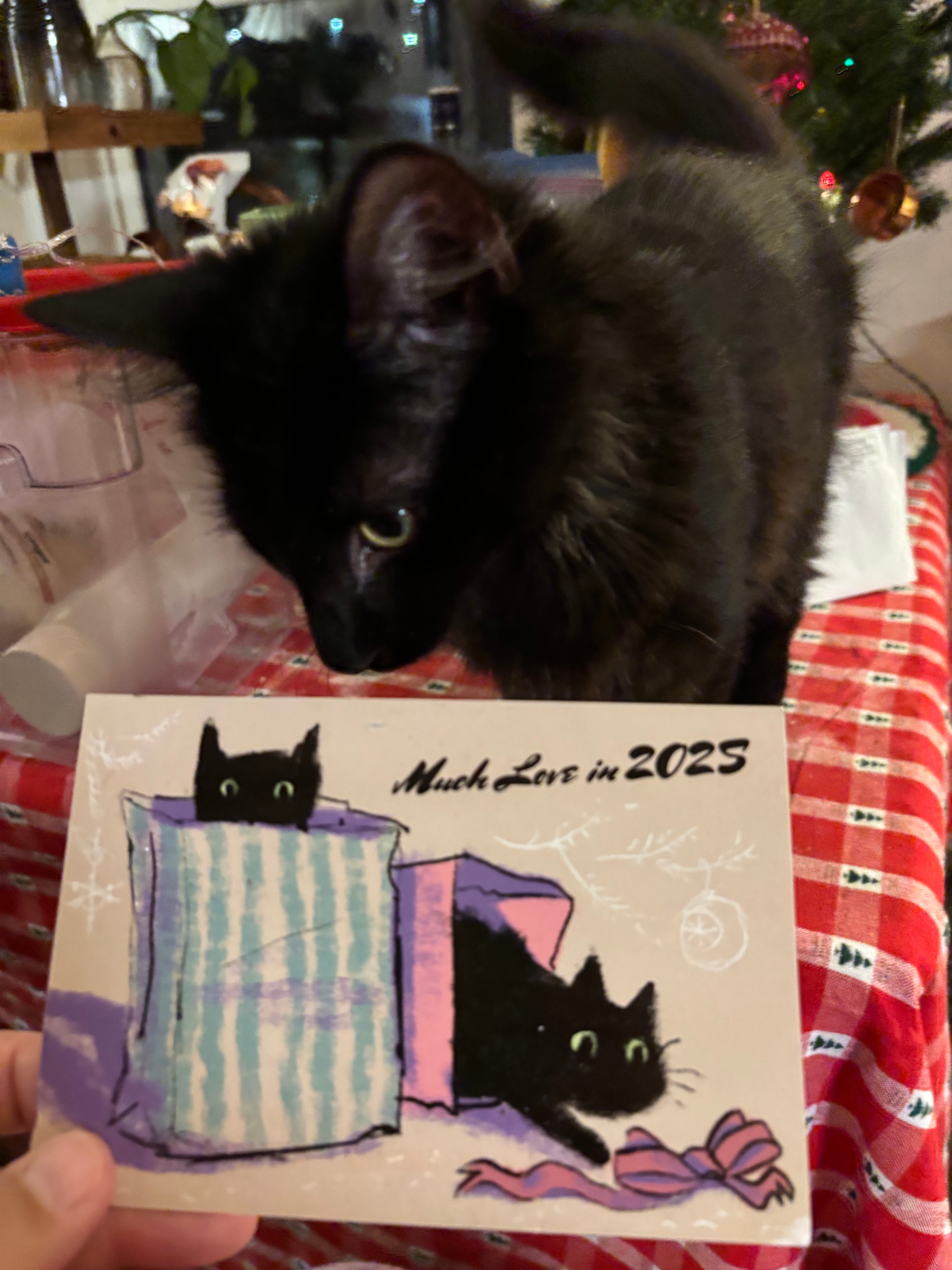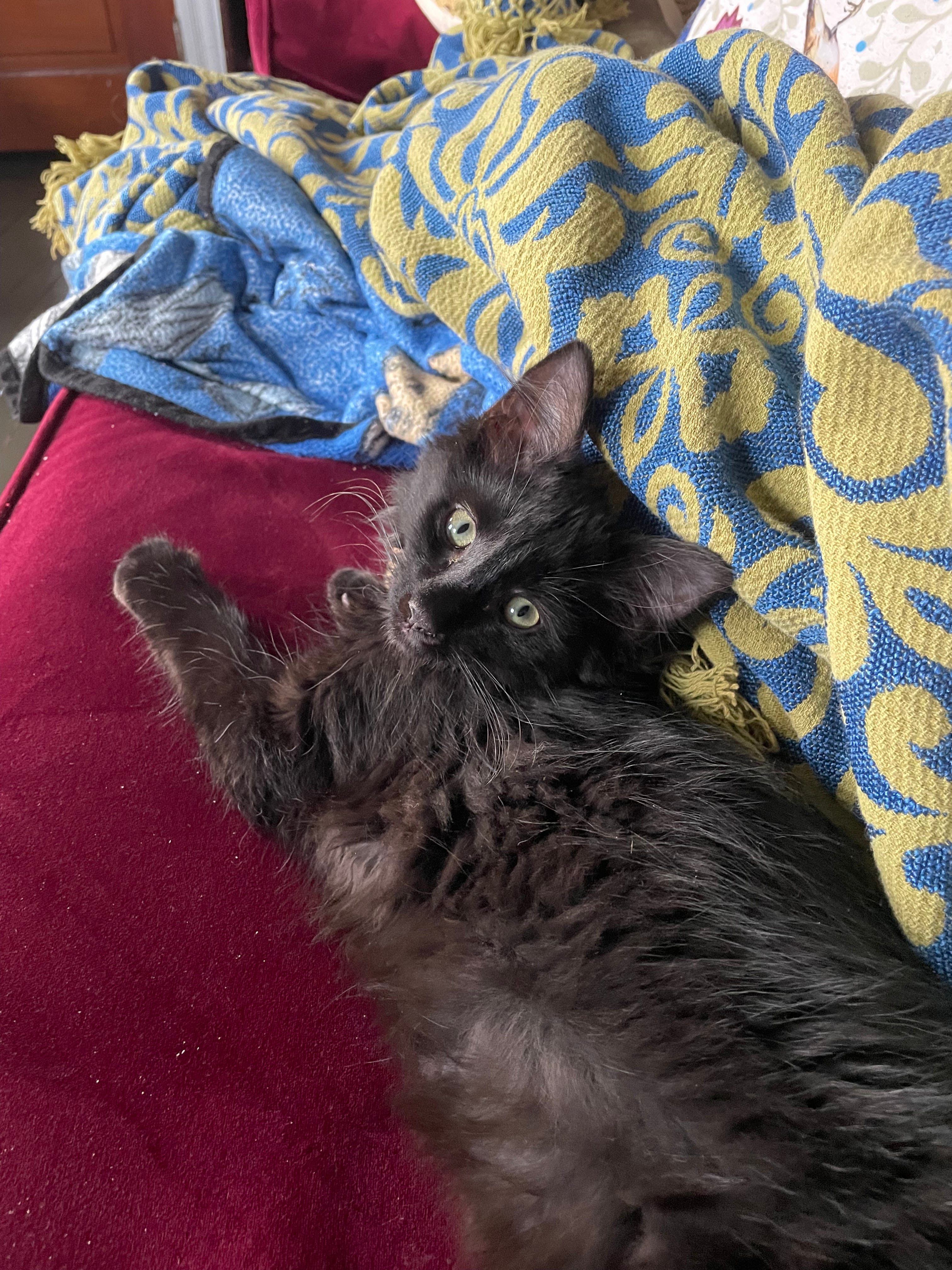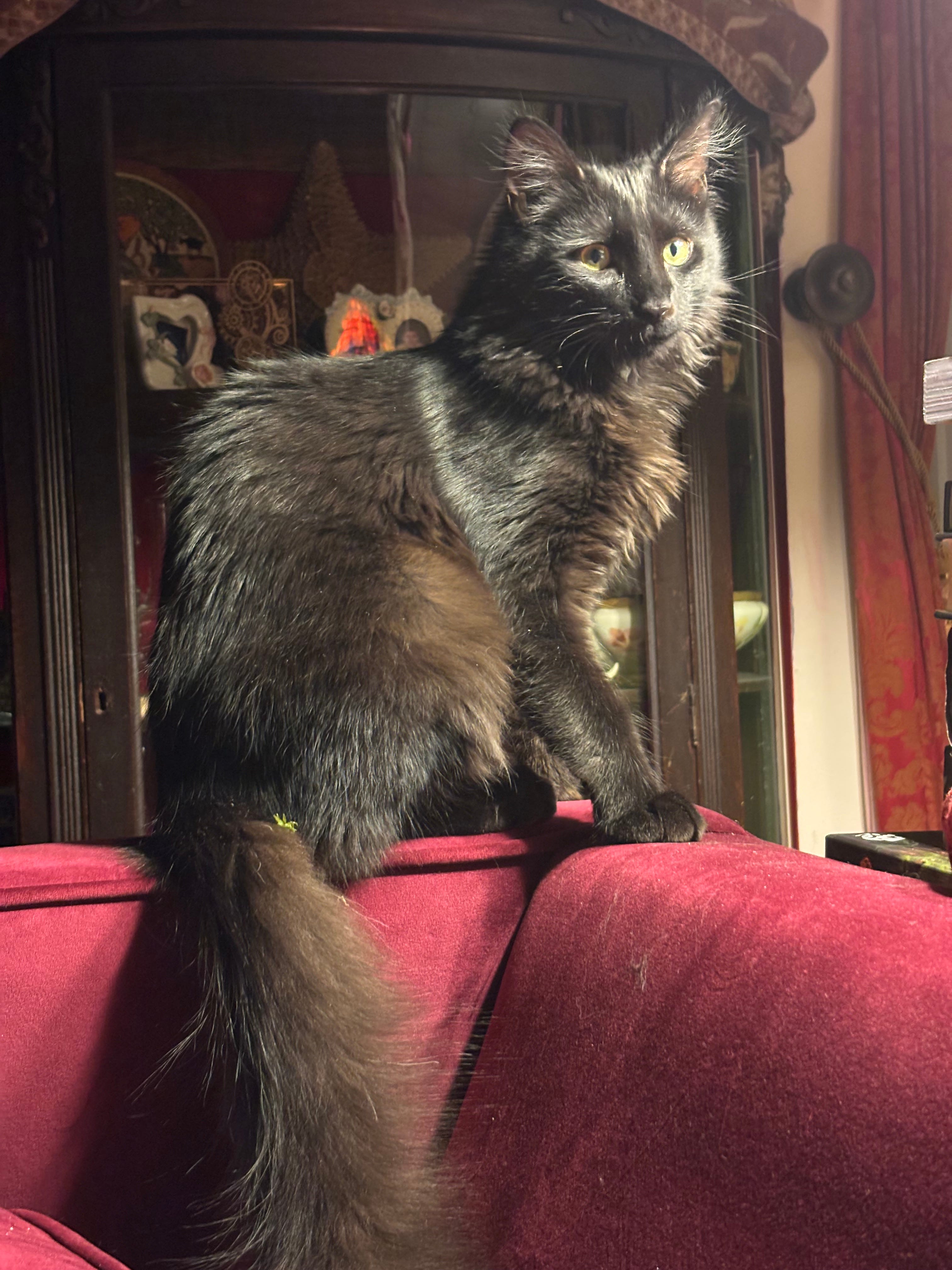 Many people suggested popular black cat names like “Binx,” “Salem,” “Shadow,” and “Void,” but none of these resonated with us or how we see this particular kitten.