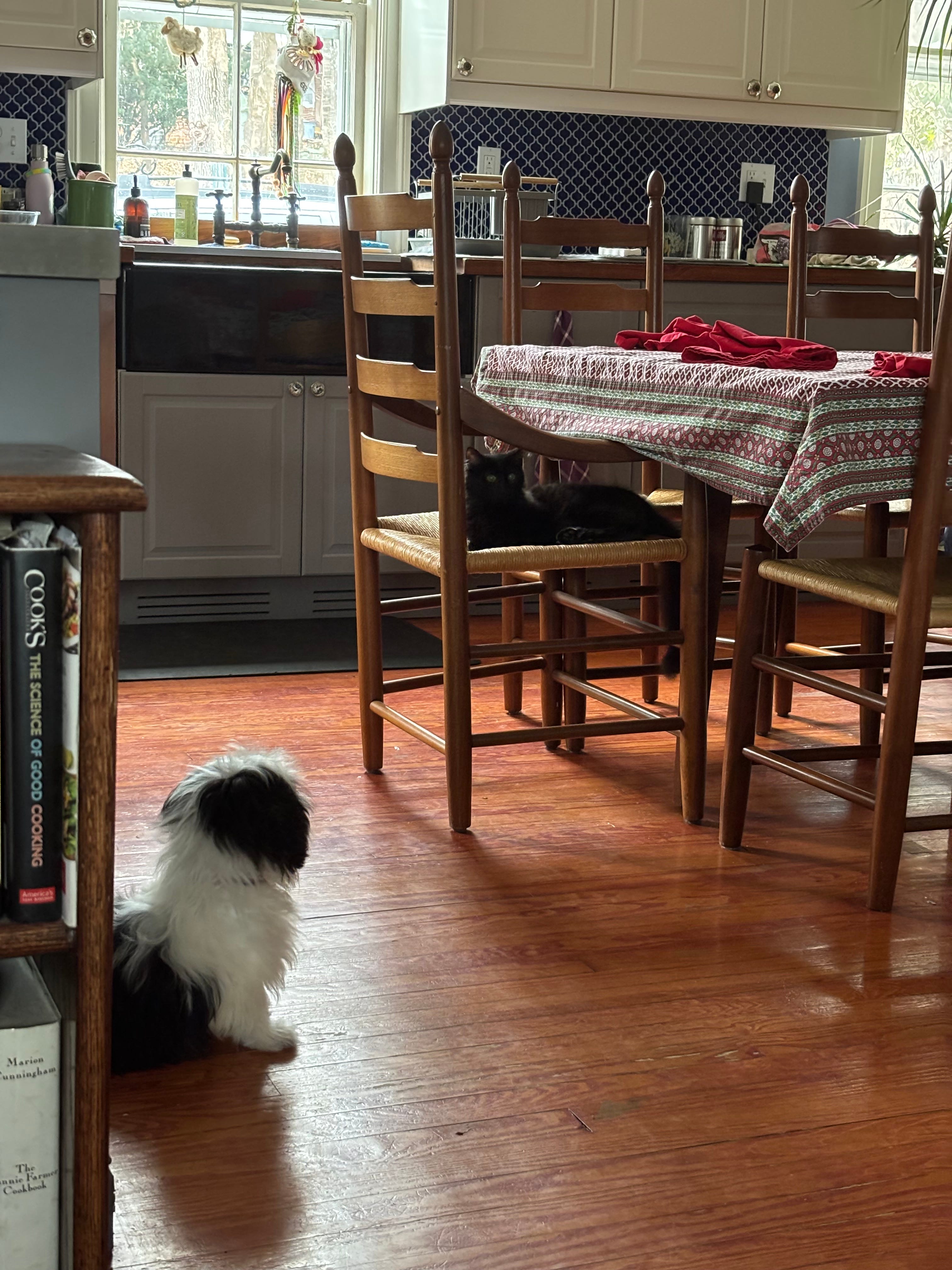 Shockley/Shockleigh (We liked the sound of this in reference to his electrocuted-looking fur and we liked that it sounded like a cranky, aristocratic little lord. Then we Googled it and found out that there was a 20th century American electrical engineer and inventor named Shockley and thought that was really cool! Though just now I Googled him again and the second thing that comes up is an article titled Shockley Was a Racist and Eugenicist so I guess we dodged another bullet on that one.)