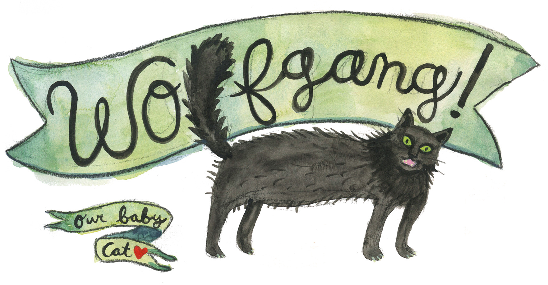 Janna, I love his name and I always love reading your posts. I didn't let myself skip ahead and enjoyed reading through all the names you considered- I didn't guess Wolfgang but when I got to the reveal I thought "oh yes, that's the perfect name." And Wolfie is a very cute nickname. It sounds like his personality is very similar to my cat (: The illustration you did is so sweet (love the tail L), enjoy the new addition to your family!